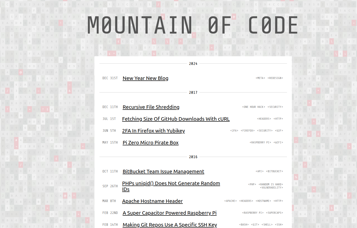 # Mountain Of Code Source of the posts to my blog, [mountainofcode](http://www.mountainofcode.co.uk)